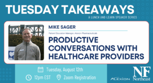 August 12th – Mike Sager, Patient Education Manager with Alexion Pharmaceuticals, will describe tips to facilitate productive conversations you can use at upcoming medical appointments.