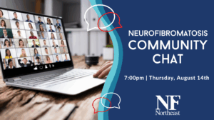 August 14th – NF patients and their families/friends are invited to join us at 7pm for a community-building virtual chat!